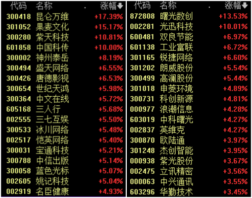 液冷服务器、传媒、虚拟数字人、算力租赁等板块都大涨。
