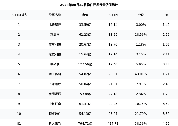 从估值角度看:科大讯飞最新市盈率PETTM为417.71,在行业内排名81/132,处于38.36分位。