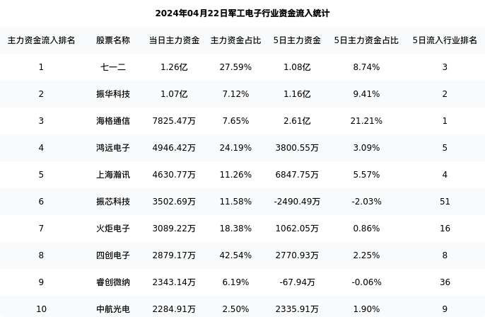 从主力资金流向来看,军工电子行业今日主力资金流入45.76亿元,在所有申万二级行业中排名:87/131。