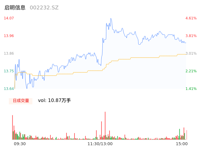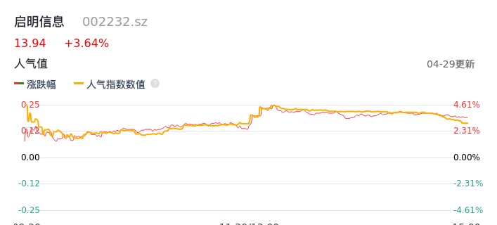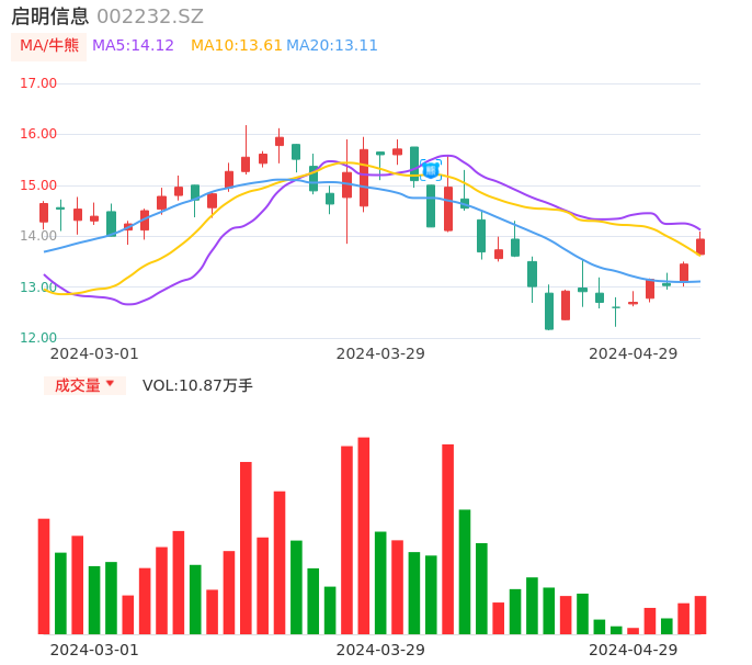04月29日,启明信息收报13.94,股价涨幅3.64%,成交金额1.51亿元,换手率2.66%。