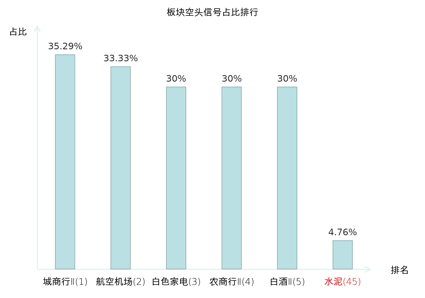 全市场所有行业板块中主力空头信号占比排名中,城商行Ⅱ板块位居第一。饮料乳品板块名次提升最快,较昨日上升106位。