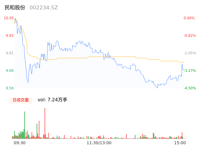04月15日,民和股份收报9.70,股价涨幅-3.10%,成交金额7049.45万元,换手率2.39%。