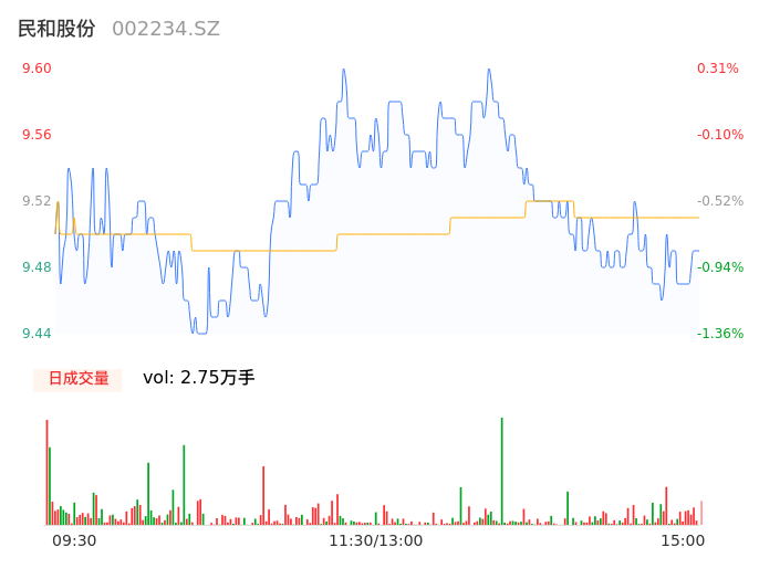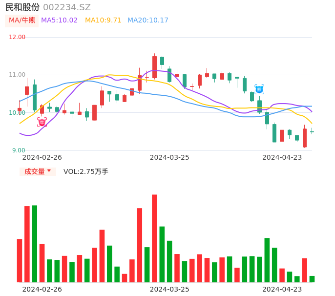 04月23日,民和股份收报9.49,股价涨幅-0.84%,成交金额2618.12万元,换手率0.91%。