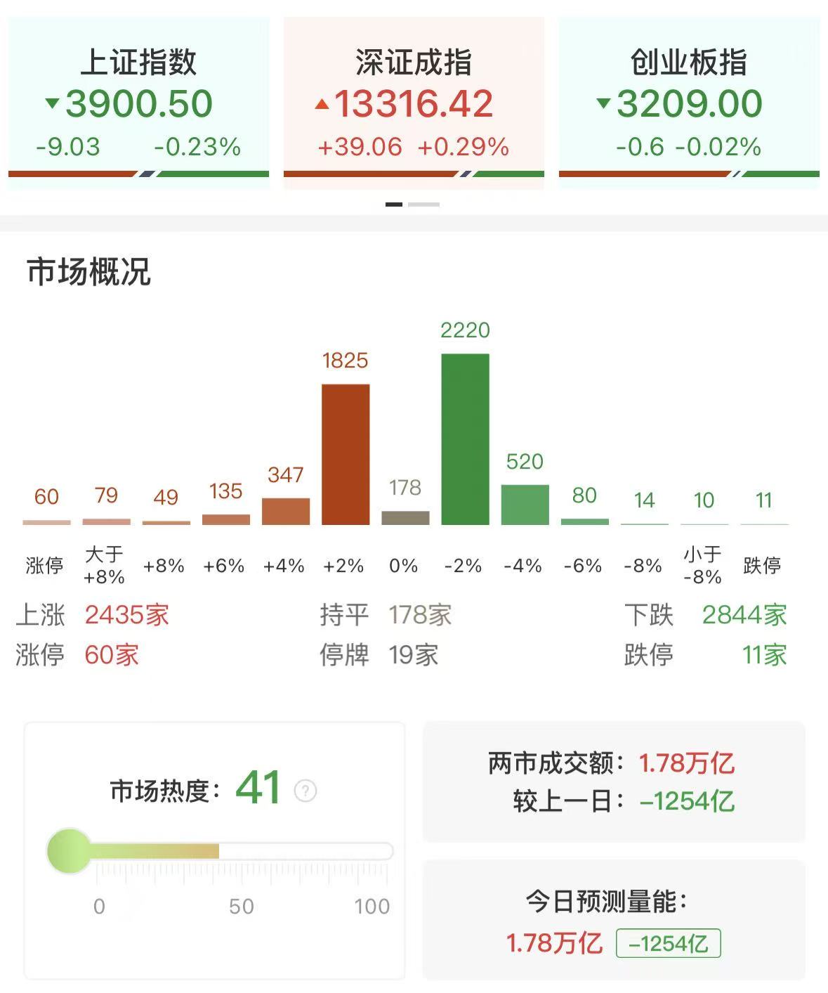 财联社12月10日讯,市场探底回升,三大指数涨跌不一,深成指、创业板指盘中先后翻红,创业板指此前一度跌超2%。沪深两市成交额1.78万亿,较上一个交易日缩量1254亿。盘面上,市场热点快速轮动,全市场超2800只个股下跌。从板块来看,海南板块持续走强,罗牛山、海南瑞泽等多股涨停。零售概念表现活跃,永辉超市3连板,茂业商业、中央商场2连板。算力硬件概念回暖,新易盛再创历史新高,长飞光纤涨停。下跌方面,银行板块走弱,招商银行、农业银行下挫。截至收盘,沪指跌0.23%,深成指涨0.29%,创业板指跌0.02%。