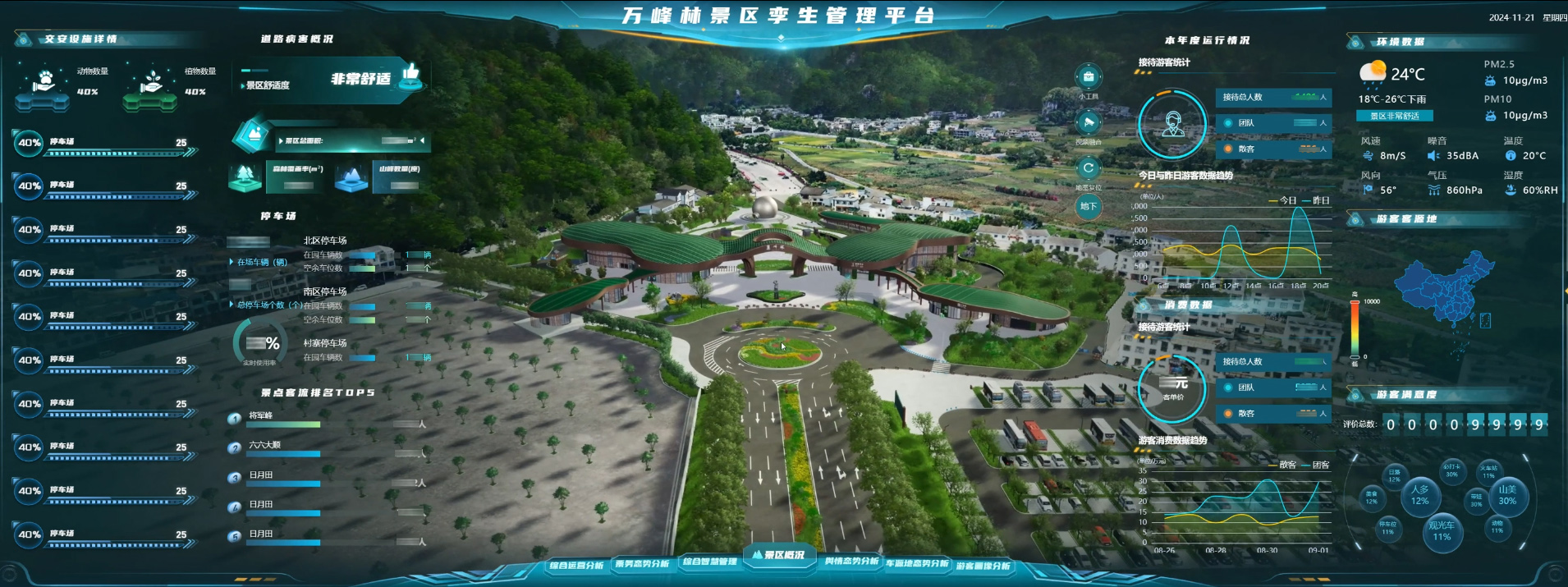 数智化改造成果显著,让景区年度运维成本降低约18%,应急响应时间缩短至平均5分钟以内。观光车调度实现精准决策,旺季车辆周转率提升40%,游客候车时间从35分钟降至12分钟。森林防火热成像系统24小时监测,实现生态环境风险预警。万峰林景区通过智慧物联平台与周边景区共享信息,形成协同发展的“数字共同体”,构建起“一屏统管”的区域旅游生态。