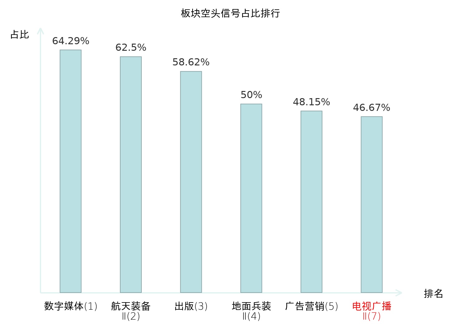 全市场所有行业板块中主力空头信号占比排名中,数字媒体板块位居第一。出版板块名次提升最快,较昨日上升116位。