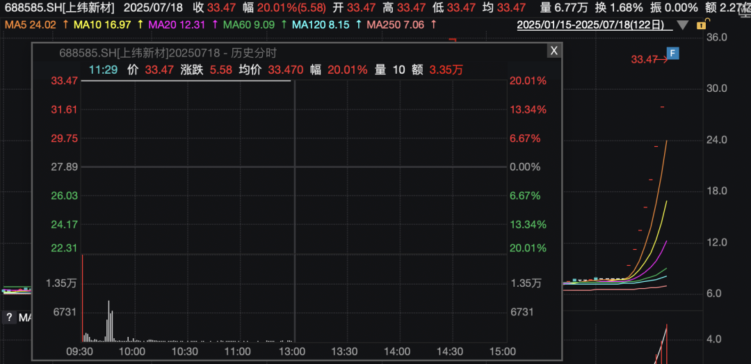 个股方面,多股涨势凌厉,其中上纬新材再度一字涨停,这是该股连续第八个交易日盘中涨停,公司股票7月以来累计涨幅已经高达330.21%。