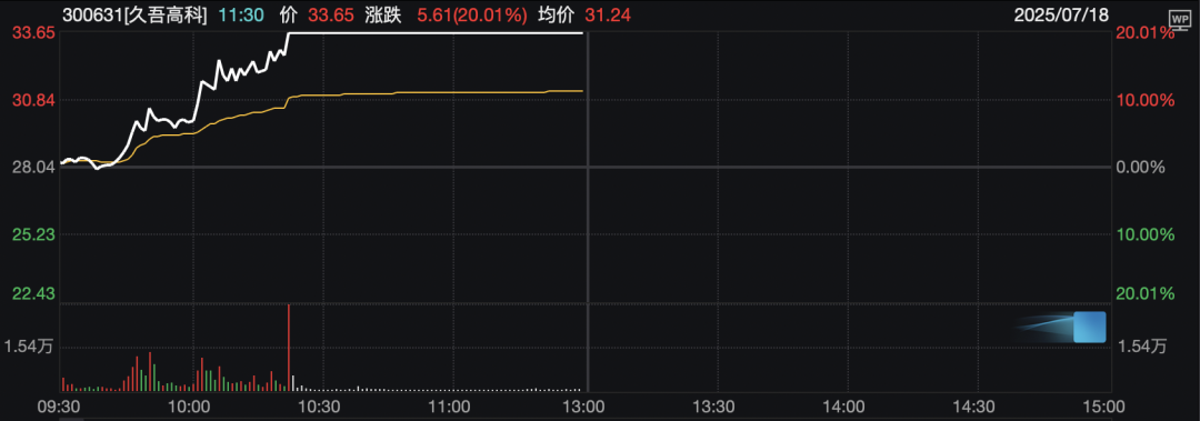 个股方面,多股涨势凌厉,其中上纬新材盘中再度一字涨停,这是该股连续第八个交易日盘中涨停。公司股票7月以来累计涨幅已经高达330.21%。