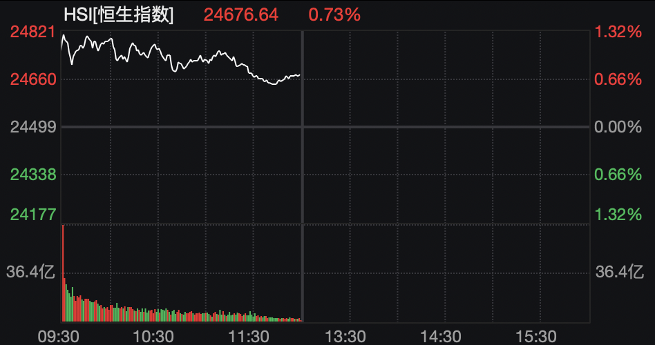 港股市场上午整体表现较好,恒生指数盘中涨幅一度超过1%。