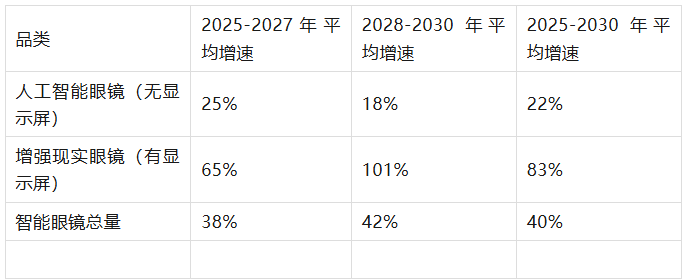 关键图表解读:2025-2030 年智能眼镜出货量增长率预测