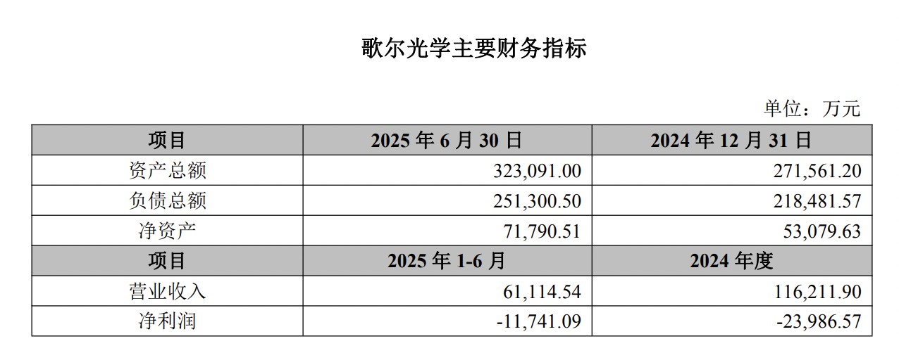 歌尔光学成立于2012年3月23日,注册地址为山东省潍坊高新区,经营范围涵盖光学仪器制造与销售、虚拟现实设备制造、电子元器件制造与批发等多个领域。歌尔光学2024年净资产5.31亿元,全年营业收入11.62亿元,净利润-2.4亿元;2025年1月至6月营业收入6.11亿元,净利润-1.17亿元。