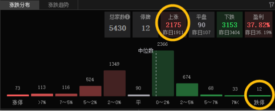 红盘个股勉强站上2000家,涨停73只,跌停12只,今天跌停股、大跌股不少,短期情绪退潮+缩量的影响。