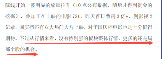 影视院线和旅游这2个方向是上周五盘面的强点,不过我们也提示大家了操作的节奏,局部个股行情,勿追涨。