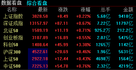 截止收盘指数集体飘红,盘中冲高后一度砸到30日线,尾盘在证券发力上涨1%的情况下,沪指小幅翻红上涨0.2%。科创50午后发力明显,领涨各指数。