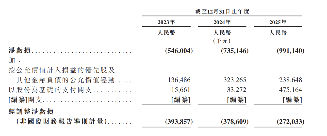 2023年至2025年,思谋科技的营业收入分别为4.85亿元、7.56亿元、10.86亿元,经调整净亏损分别为3.94亿元、3.79亿元、2.72亿元。期内,工业AI智能体产生的收入分别占公司总收入的62.4%、73.8%及78.5%。
