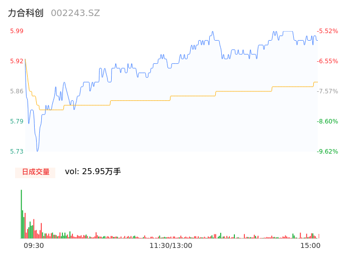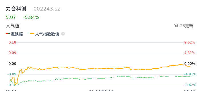 04月26日,力合科创收报5.97,股价涨幅-5.84%,成交金额1.52亿元,换手率2.17%。