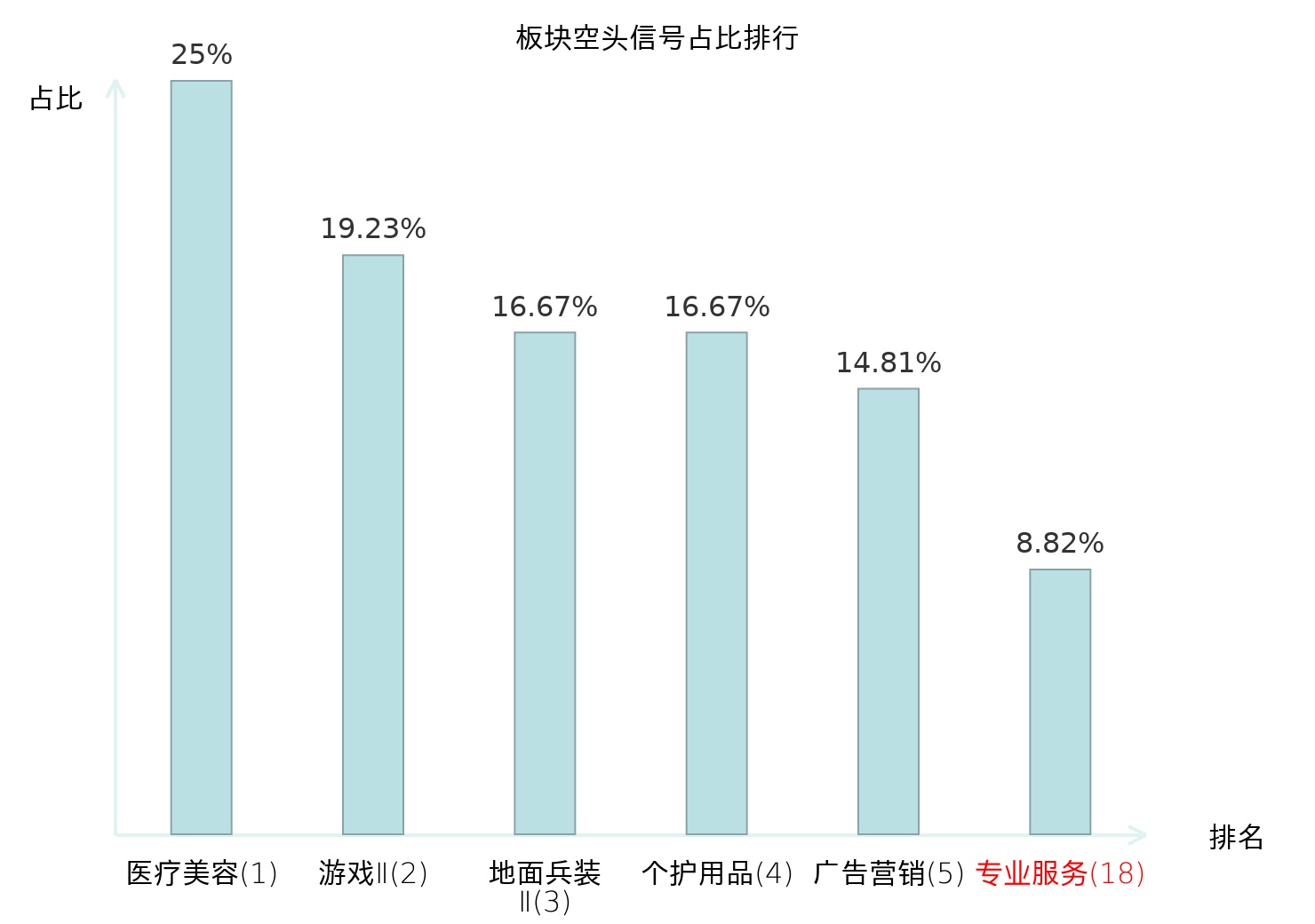 全市场所有行业板块中主力空头信号占比排名中,医疗美容板块位居第一。游戏Ⅱ板块名次提升最快,较昨日上升122位。