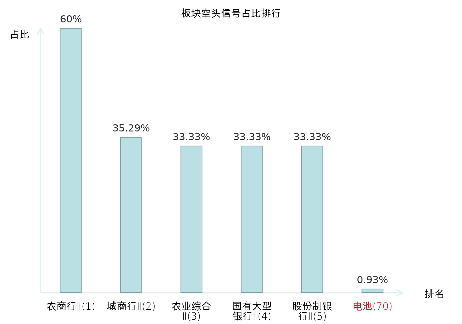 全市场所有行业板块中主力空头信号占比排名中,农商行Ⅱ板块位居第一。铁路公路板块名次提升最快,较昨日上升106位。