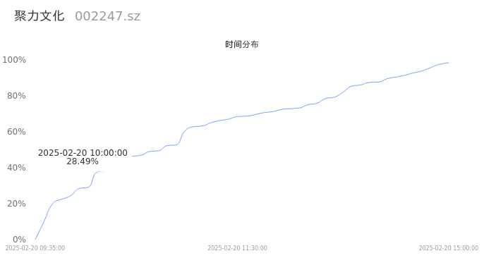 002247聚力文化2025年02月20日成交17.79万手,成交金额4807.34万,相较昨日缩量1.19万手,换手率2.76%,成交清淡。