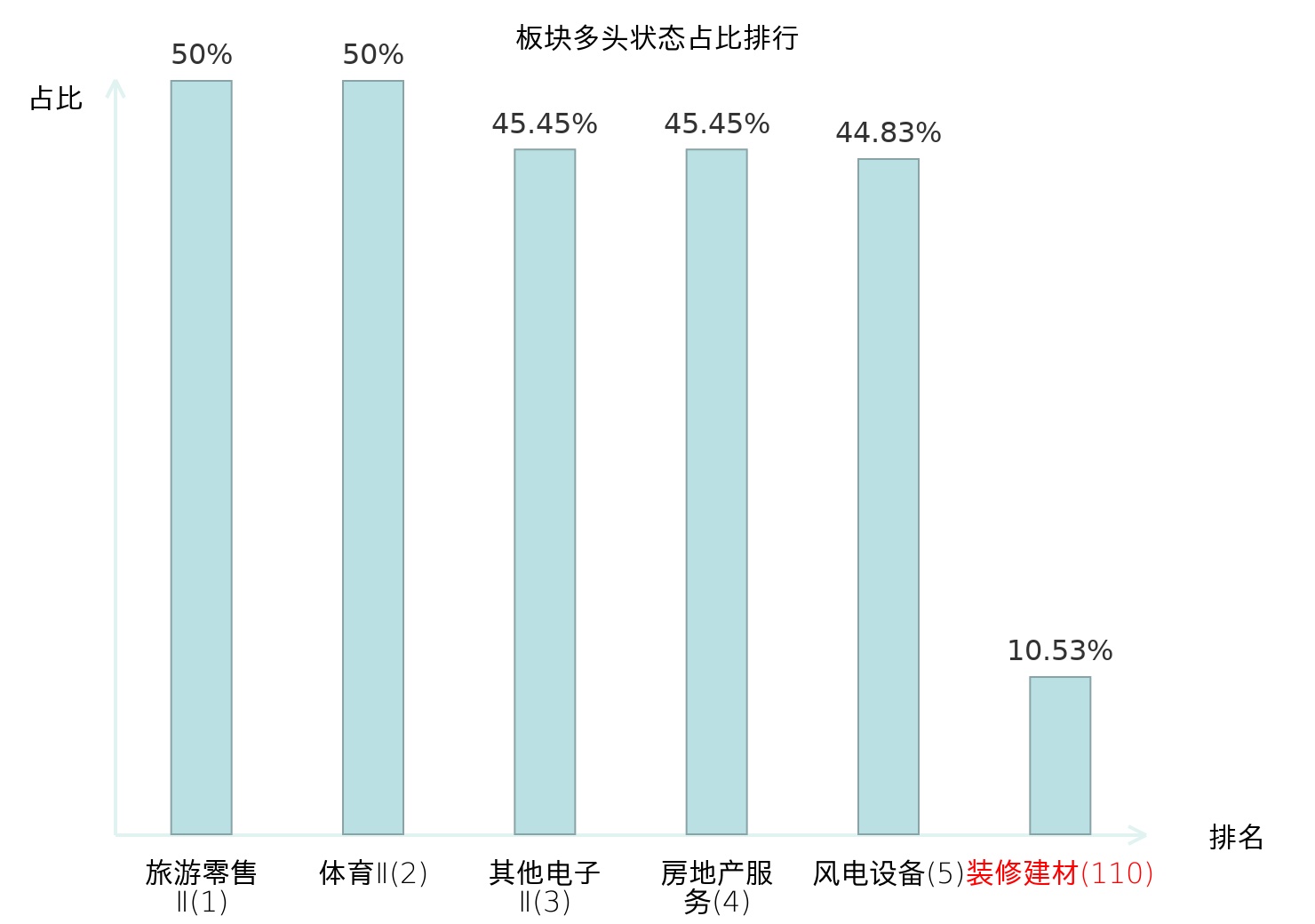 全市场所有行业板块中主力多头状态占比排名中,旅游零售Ⅱ板块位居第一。其他家电Ⅱ板块名次提升最快,较昨日上升112位。