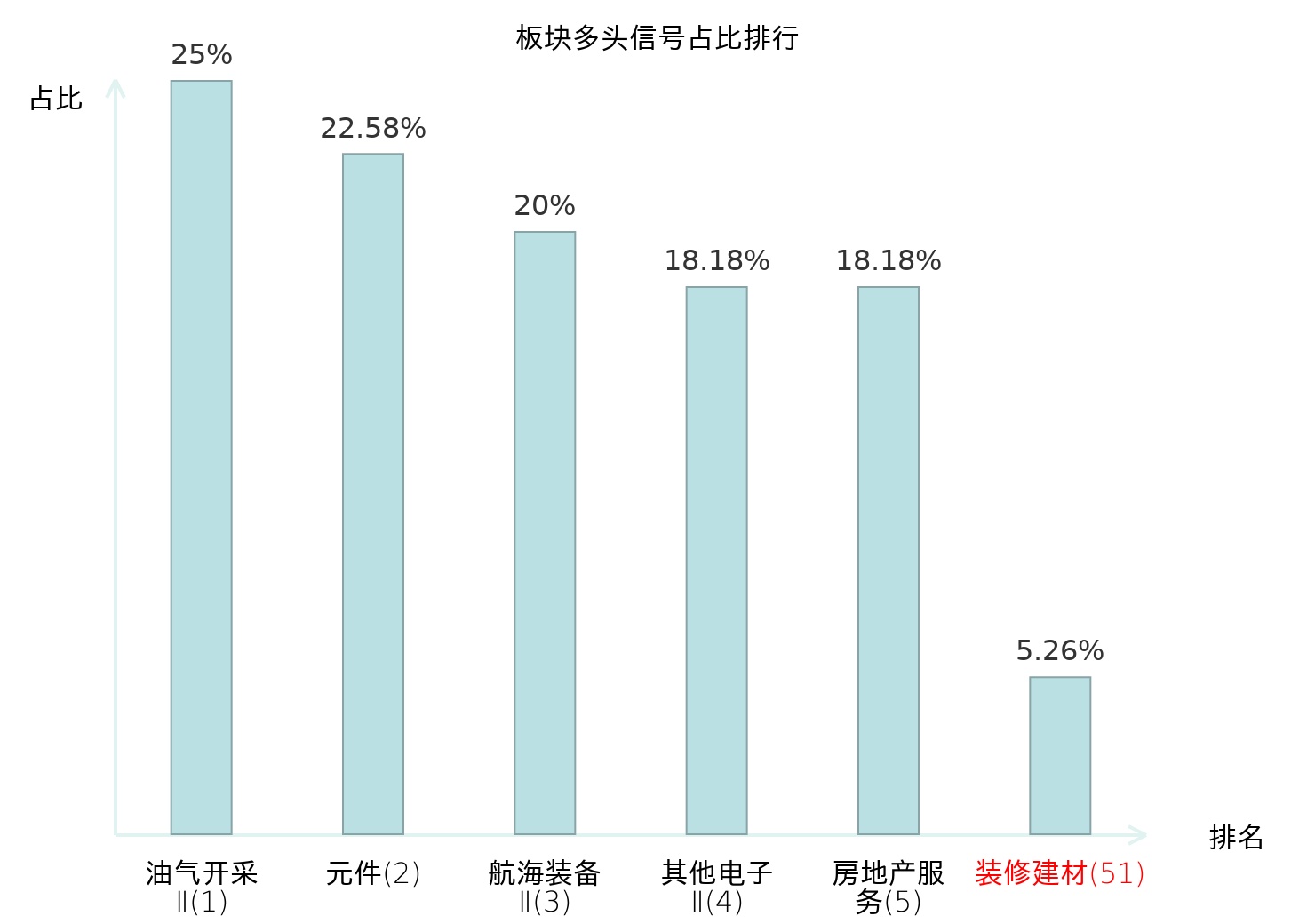 全市场所有行业板块中主力多头信号占比排名中,油气开采Ⅱ板块位居第一。油气开采Ⅱ板块名次提升最快,较昨日上升125位。