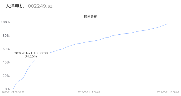 002249大洋电机2026年01月21日成交187.58万手,成交金额21.87亿,相较昨日缩量51.34万手,换手率10.14%,成交活跃。