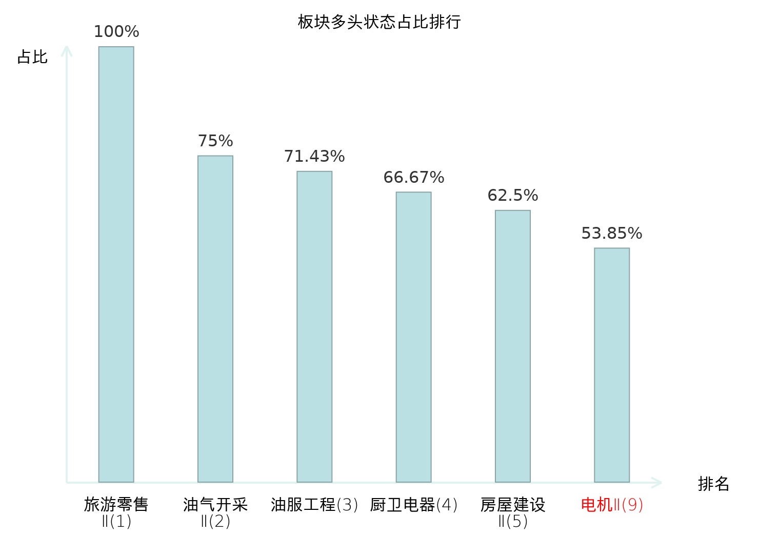 全市场所有行业板块中主力多头状态占比排名中,旅游零售Ⅱ板块位居第一。焦炭Ⅱ板块名次提升最快,较昨日上升58位。