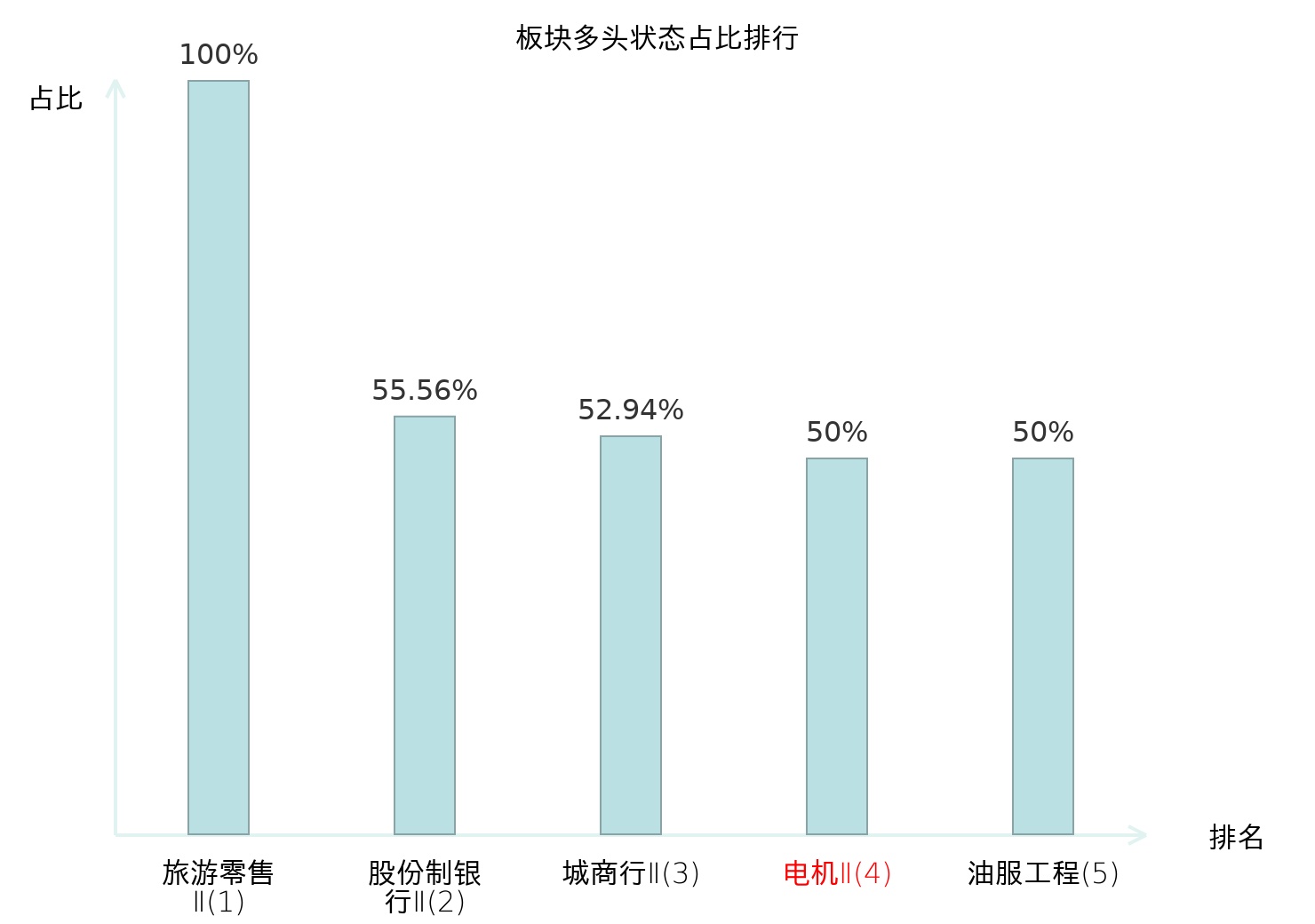 全市场所有行业板块中主力多头状态占比排名中,旅游零售Ⅱ板块位居第一。互联网电商板块名次提升最快,较昨日上升65位。