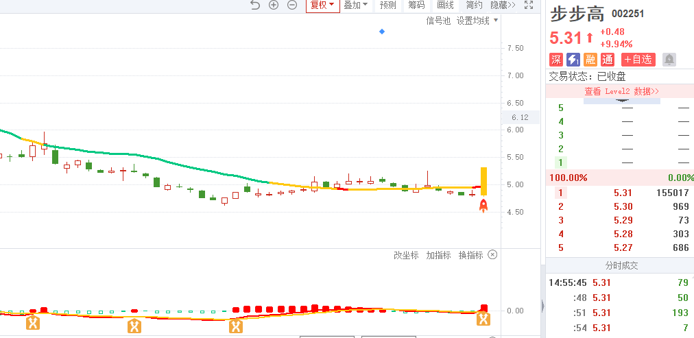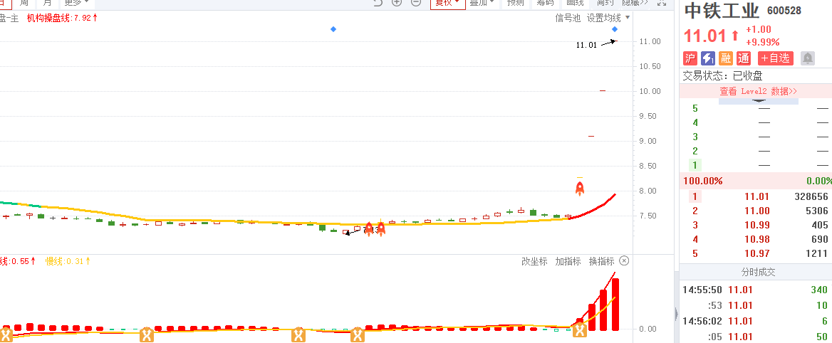 最后要等阴线的时候找主力进场股票。这个对不会看盘口的朋友比较难。大家可以借助指标工具来做。我经常用的是小火箭指标。
