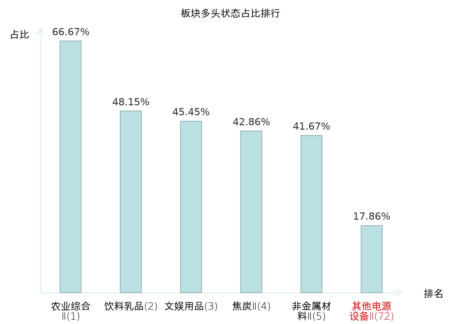 从主力宝信号数据分析,海陆重工所属的其他电源设备Ⅱ板块中共5只股票处于主力多头状态,主力多头状态占比在全行业中排名第72位,较昨日下降20位。排名下降可能反映了主力对该板块态度的变化。全市场所有行业板块中,农业综合Ⅱ板块的主力多头状态占比最高,位居第一;特钢Ⅱ板块名次提升最快,较昨日上升46位。这些变动揭示了不同行业间主力资金偏好的变化,为投资者理解市场动态提供了重要参考。