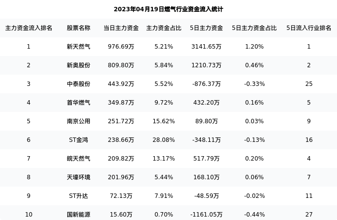 从主力资金流向来看,燃气行业今日主力资金流入2.19亿元,在所有申万二级行业中排名:55/131。