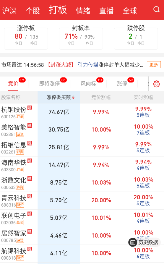 从今日竞价反馈上来:主要竞价封单最大的还是杭钢股份与美格智能,代表的方向主要是deepseek,同时各个云端的算力都在继续发酵,从竞价上看分支龙头依旧是高溢价,代表是行情继续沿着分歧一致的方向去走,比如昨日智驾发布之后,联创电子直接开盘爆量,代表市场而言其余分支方向还是有溢价的机会与预期,今日前排可以相对有漏单的还是拓维信息这种大成交额的品种