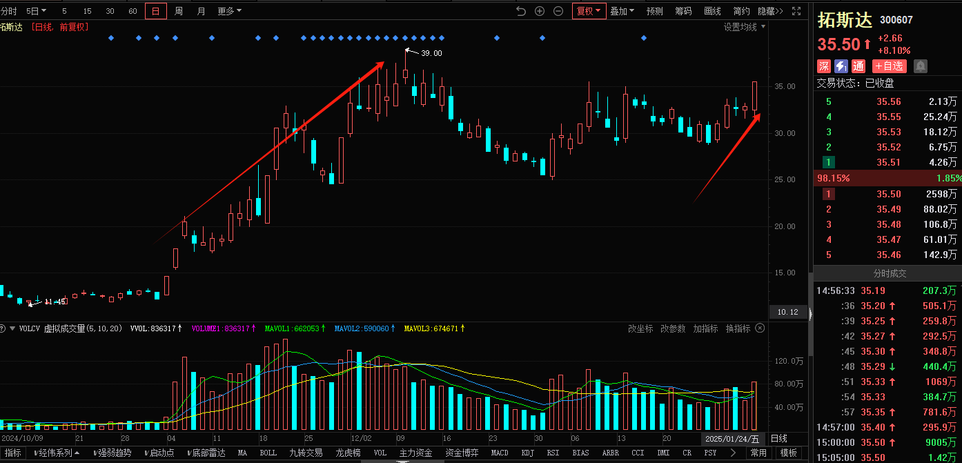 开盘之后,市场先是抄底资金进场,整个逻辑方向有资金进场抄底,比如人形机器人方向有福莱新材这种直接趋势继续加速,代表着趋势资金的延续,而deepseek相关的公司,例如每日互动与优刻得这种也在继续加速转一致