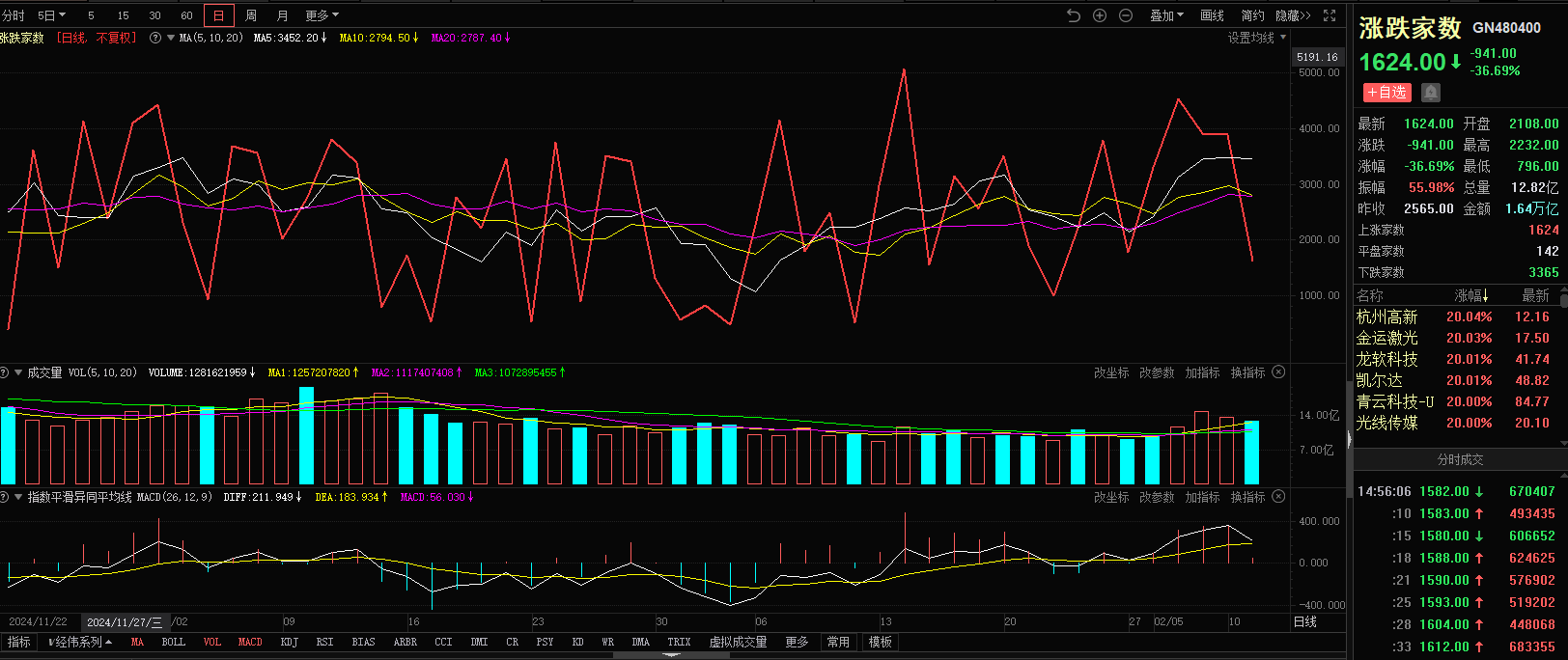 从连板家数来看,昨日涨停家数维持,但是量能已经开始缩小,今日市场继续缩量整体而言涨停板数量减少,从盘面上看市场聚焦前排顶死,跌停数量虽然不多,但是跌幅超过10%以上的家数增多,后续第一阶段的行情进入退潮,要看第二阶段能不能重新起势