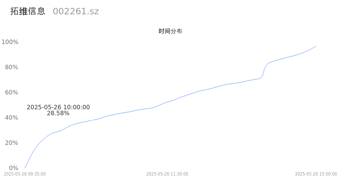002261拓维信息2025年05月26日成交64.73万手,成交金额19.92亿,相较昨日放量1.14万手,换手率5.68%,成交清淡。