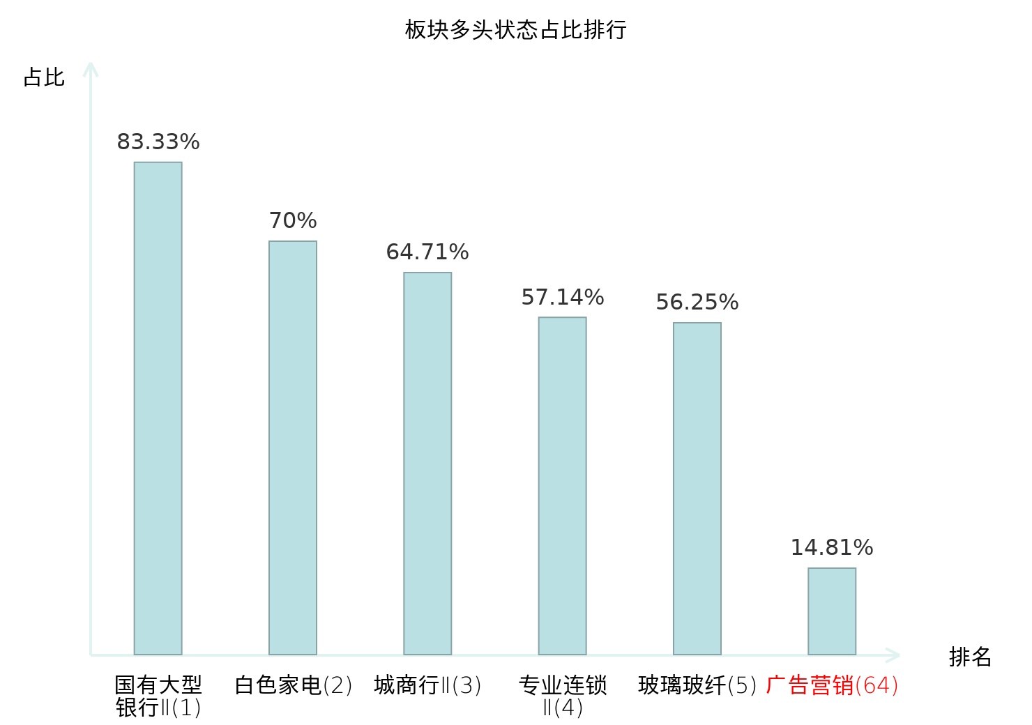 从主力宝信号数据分析,新华都所属的广告营销板块中共4只股票处于主力多头状态,主力多头状态占比在全行业中排名第64位,较昨日上升26位。排名上升表明主力对于该板块整体看多意愿增强;此次跃升幅度较大,反映主力态度出现明显积极调整。全市场所有行业板块中主力多头状态占比排名中,国有大型银行Ⅱ板块位居第一;食品加工板块名次提升最快,较昨日上升51位。这些变动为投资者观察主力资金在不同行业间的配置倾向提供了客观依据。