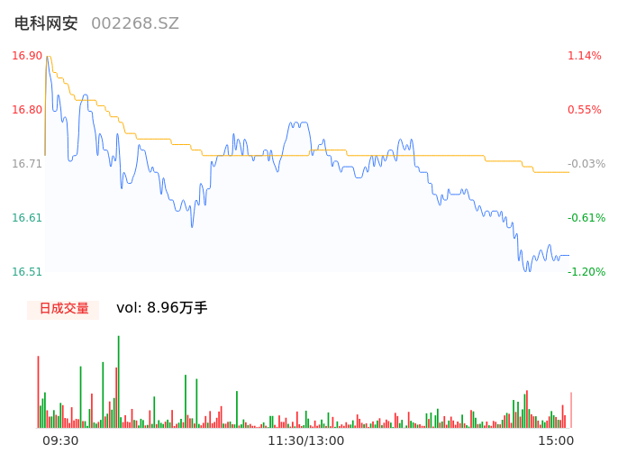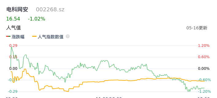 05月16日,电科网安收报16.54,股价涨幅-1.02%,成交金额1.49亿元,换手率1.06%。