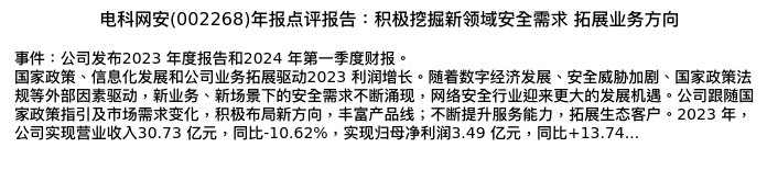 值得注意的是:2024年05月国盛证券的刘高畅分析师,首次发布关于电科网安的研究报告,标题为:电科网安(002268)年报点评报告:积极挖掘新领域安全需求 拓展业务方向。