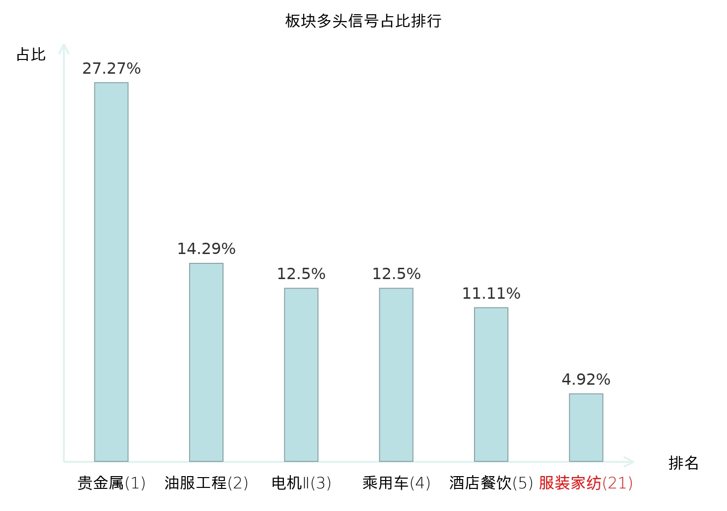 全市场所有行业板块中主力多头信号占比排名中,贵金属板块位居第一。乘用车板块名次提升最快,较昨日上升114位。