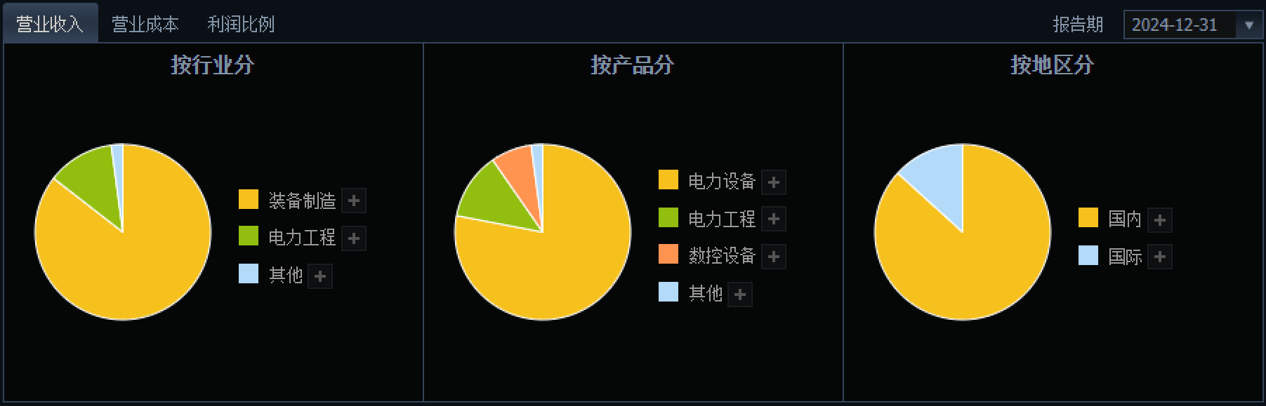 公司全年电力设备业务实现收入18.11亿元,同比+11.47%,其中直接+间接出口4.85亿元,同比+41%。2024年公司电力设备业务毛利率为58.27%,同比+0.07pct.;公司直接出口毛利率高达65.20%,同比-0.01pct.,其中以电力设备出口为主。