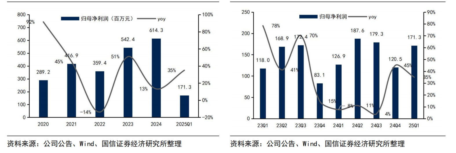 一季度公司实现营收5.10亿元,同比+12.92%,环比-18.29%;归母净利润1.71亿元,同比+35.00%,环比+42.20%。一季度公司毛利率55.21%,同比+2.81pct,环比+9.35pct,净利率34.30%,同比+5.74pct,环比+14.90pct。
