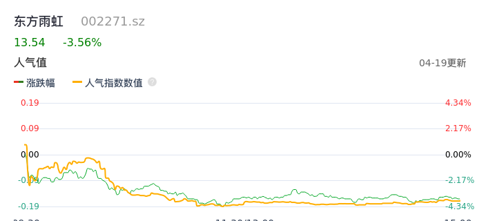 04月19日,东方雨虹收报13.54,股价涨幅-3.56%,成交金额10.38亿元,换手率3.81%。