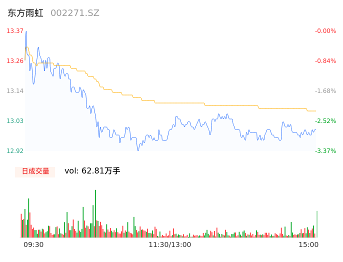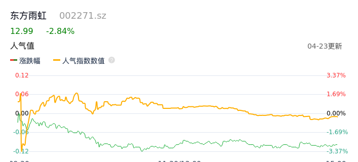 04月23日,东方雨虹收报12.99,股价涨幅-2.84%,成交金额8.21亿元,换手率3.15%。