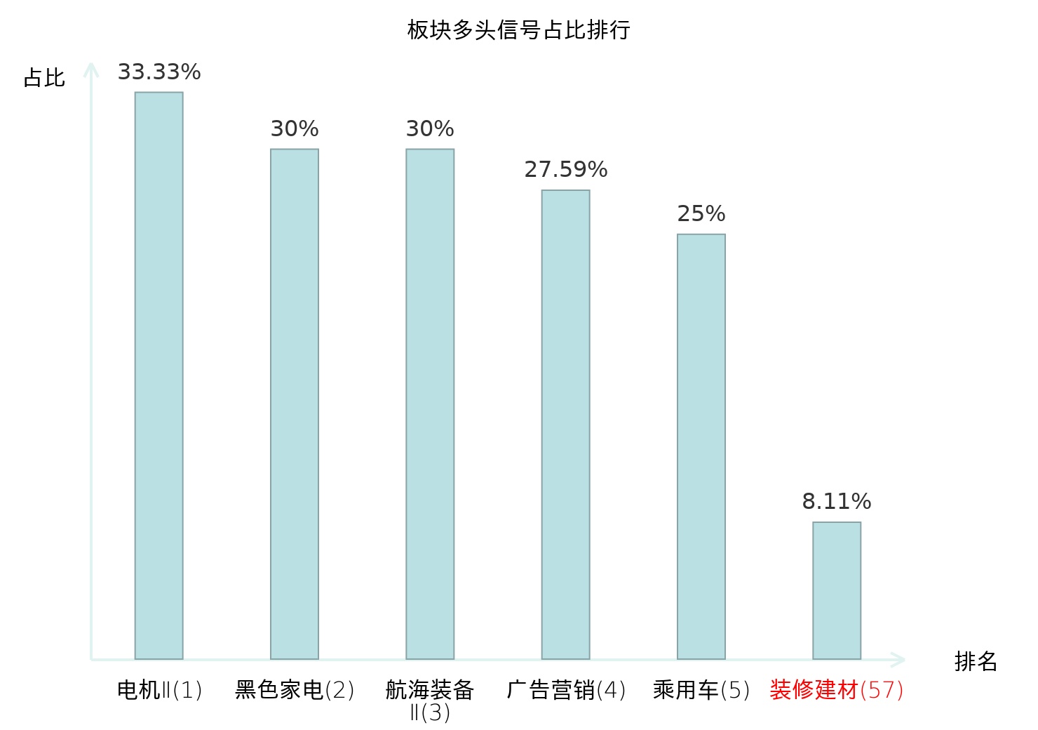 全市场所有行业板块中主力多头信号占比排名中,电机Ⅱ板块位居第一。乘用车板块名次提升最快,较昨日上升114位。