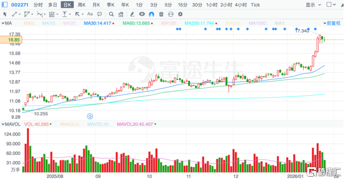 近期,东方雨虹(002271.SZ)股价表现强劲,自去年6月阶段触底后持续稳步回升,进入2026年以来涨势更是呈现加速。截至1月27日,公司在年内累计涨幅已达约24%,总市值也重回400亿关口上方。