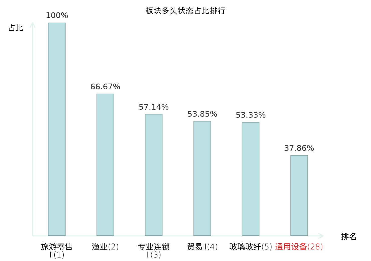从主力宝信号数据分析,川润股份所属的通用设备板块中共有92只股票处于主力多头状态,主力多头状态占比在全行业中排名第28位,较昨日下降7位。较高的排名表明主力对于该板块整体看多意愿较强,而此次排名下降可能反映了主力对该板块态度的一些调整。全市场所有行业板块中,旅游零售Ⅱ板块的主力多头状态占比最高,位居第一;农业综合Ⅱ板块名次提升最快,较昨日上升83位。这些变动揭示了不同行业间主力资金流向的变化,为投资者提供了市场趋势的重要参考。