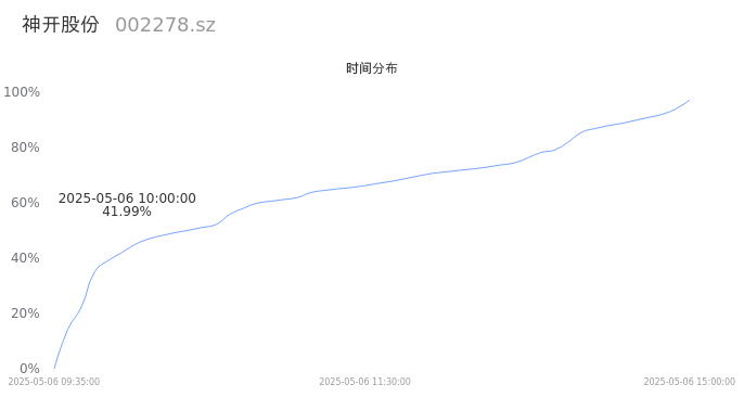 002278神开股份2025年05月06日成交72.87万手,成交金额6.01亿,相较昨日放量16.39万手,换手率21.80%,成交活跃。