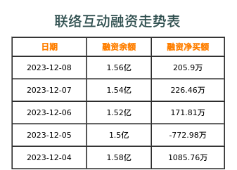 综上,联络互动当前两融差额为1.56亿,近5个交易日累计上升0.19%