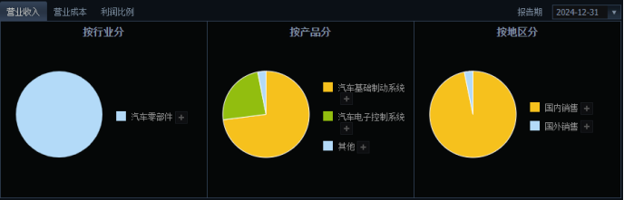 2024年公司毛利率为18.4%,同比+1.8pct,分业务看基础制动业务毛利率为18.0%,同比+2.3pct,电子控制系统毛利率15.8%,同比+0.3pct,毛利率显著提升主要为公司生产规模提升带来的规模效应所致。24Q4公司毛利率为20.17%,同环比+3.9pct/+1.5pct,毛利率实现全年逐季度环比提升。期间费用率体现规模效应,2024年期间费用率为12.8%,同比-1.1pct,其中销售费用率/管理费用率/研发费用率/财务费用率分别为1.91%/4.61%/7.40%/-1.14%,同比分别+0.36pct/-0.31pct/+1.29pct/-2.44pct。
