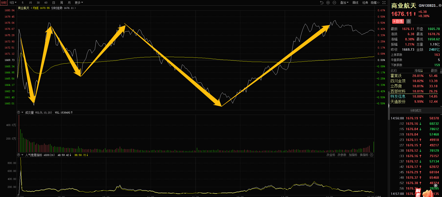 至于近期的主线商业航天,今天全天震荡的利好,下午跟随指数有所回暖。